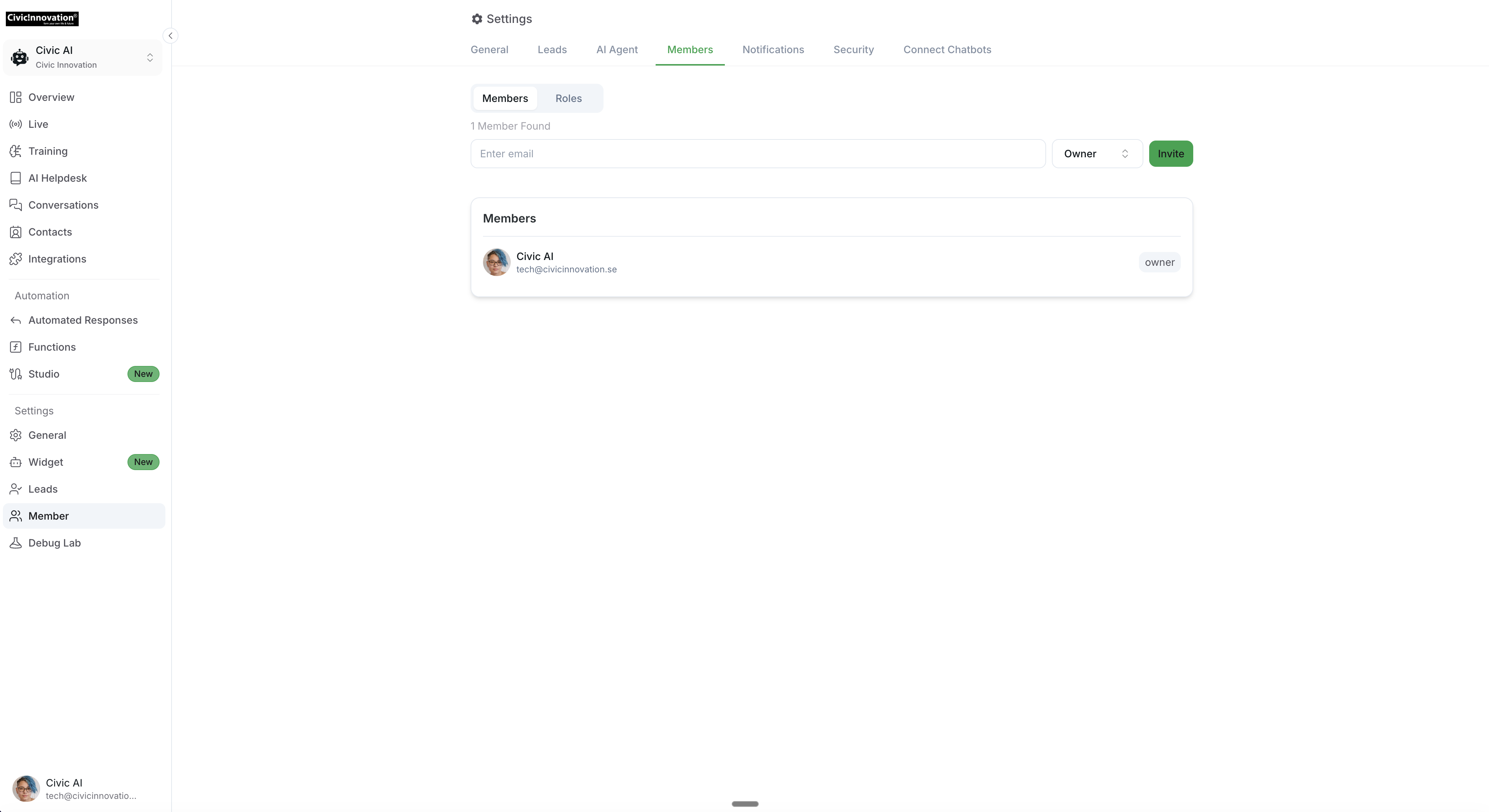 Adding teammates, assigning roles, and collaborating effectively is made easy with CivicAI. Follow these steps to invite team members to your AI agent: