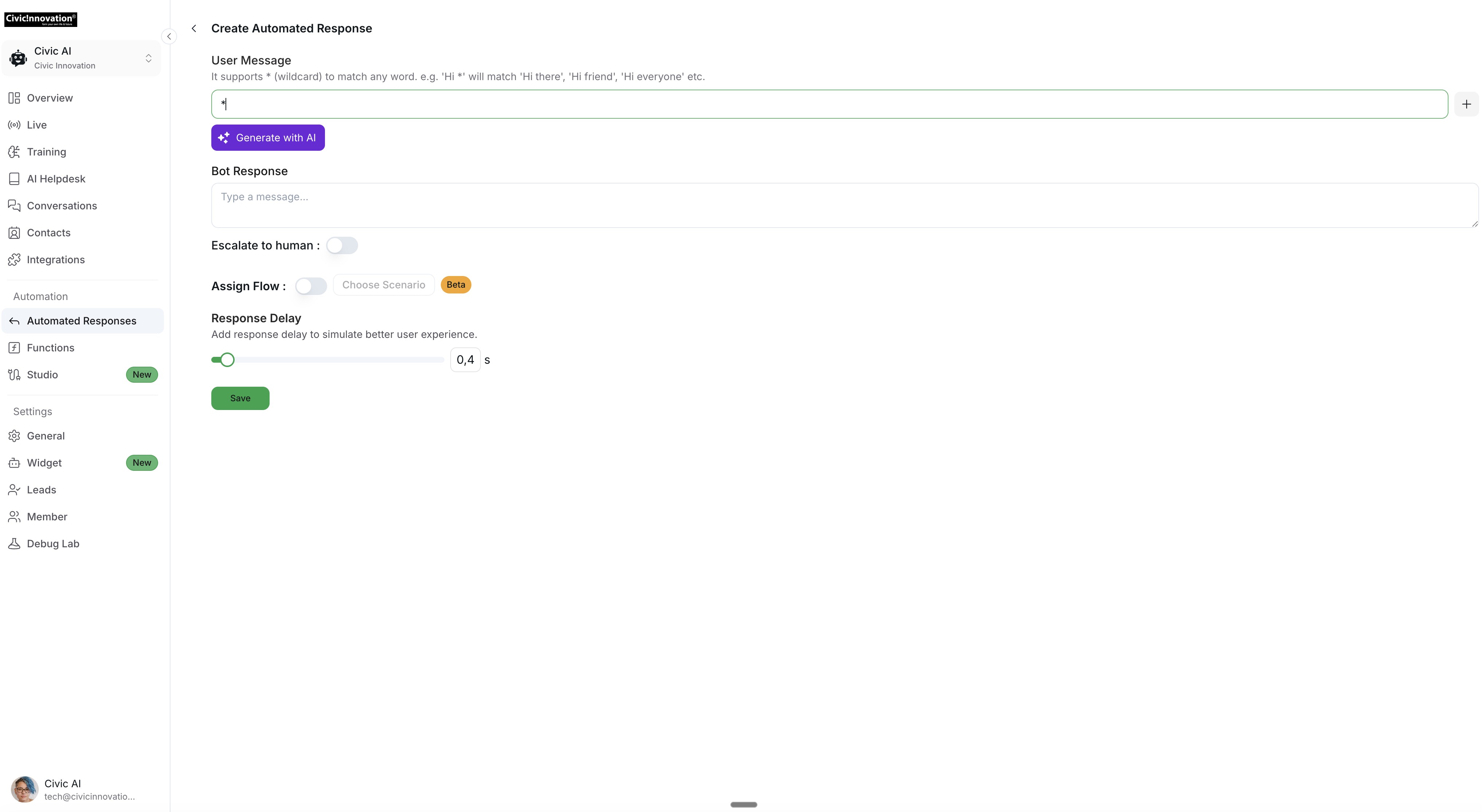 Guide to creating & using automated responses in CivicAi Chatbot